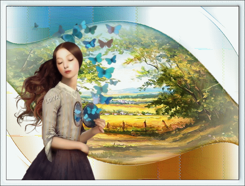 11 – Copie o tube libellulegraphisme_femme_aux_papillons, cole rezise 70%, aplique o mesmo drop shadown anterior e ajeite.