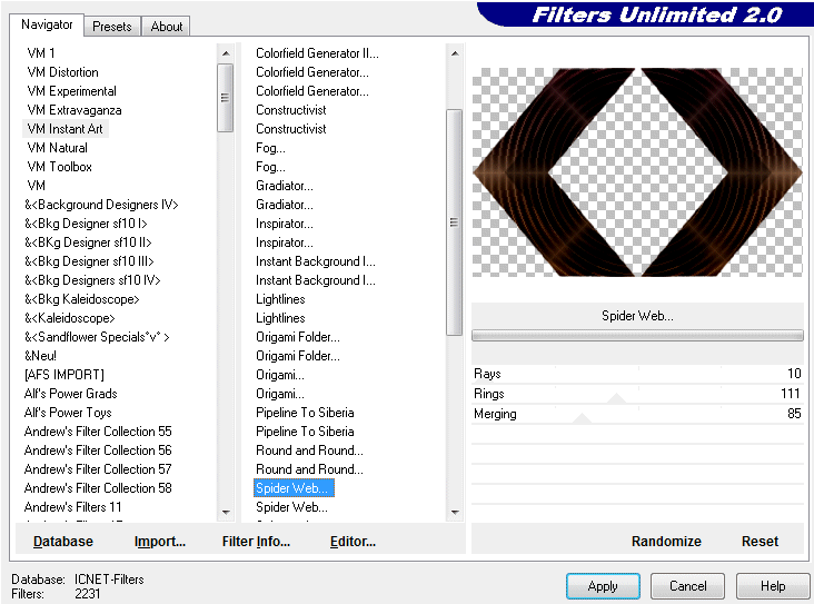 13 - Na mesma layer aplique o plugin VM Instant Art > Spider Web nas configurações: